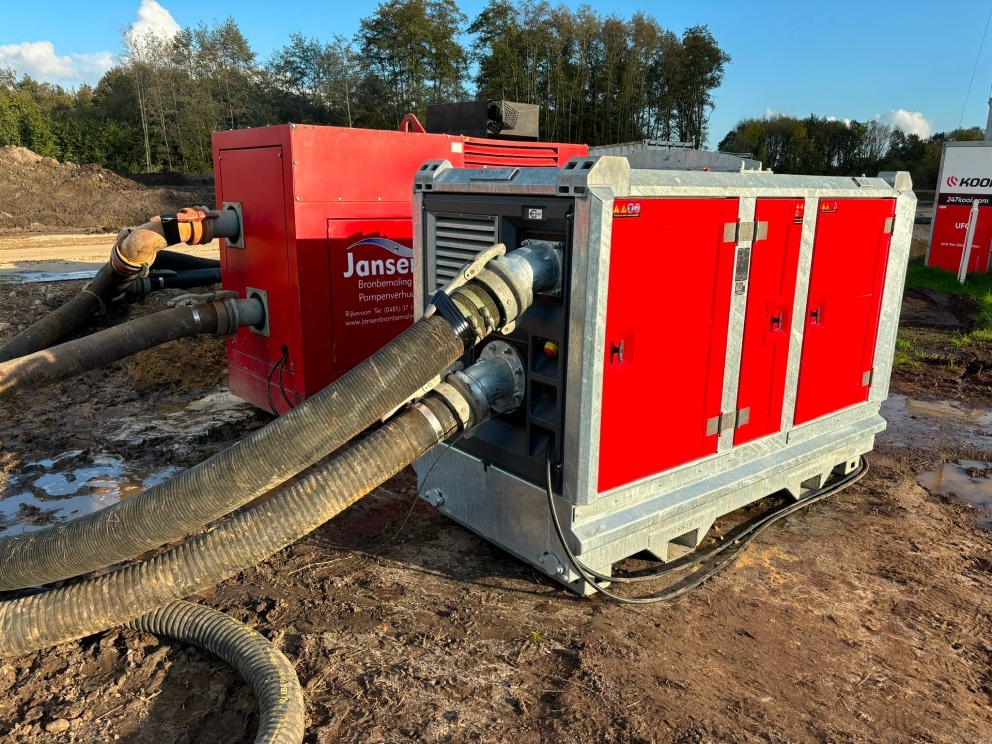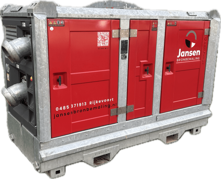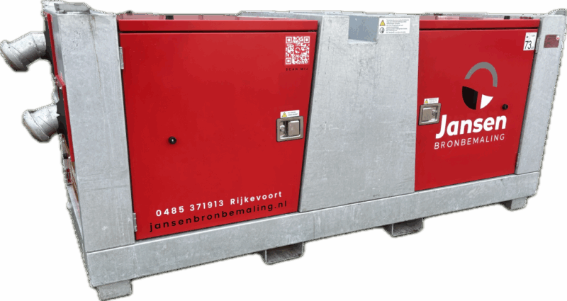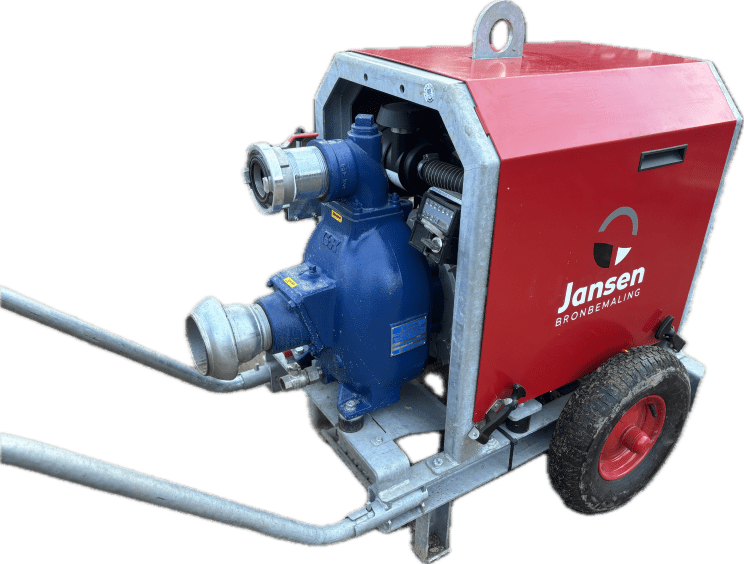 Veelzijdige droogzelfaanzuigende vuilwaterpomp. In de pomp zit een centrifugaalpomp die wordt aangedreven door een 25kW dieselmotor. Hierdoor heeft de pomp een capaciteit van max. 385 m³/h en een opvoerhoogte van maximaal 32 meter. De vuilwaterpomp is uitgerust met een vacuümsysteem en een vacuümpomp. Met deze droogopgestelde pomp kunt u rekenen op een krachtige zuigwerking van 8 à 9 meter of tussen de 70 tot 100 meter zuiglengte. Het vooraf opvullen met water is bij deze pomp niet nodig, hierdoor is hij snel inzetbaar.